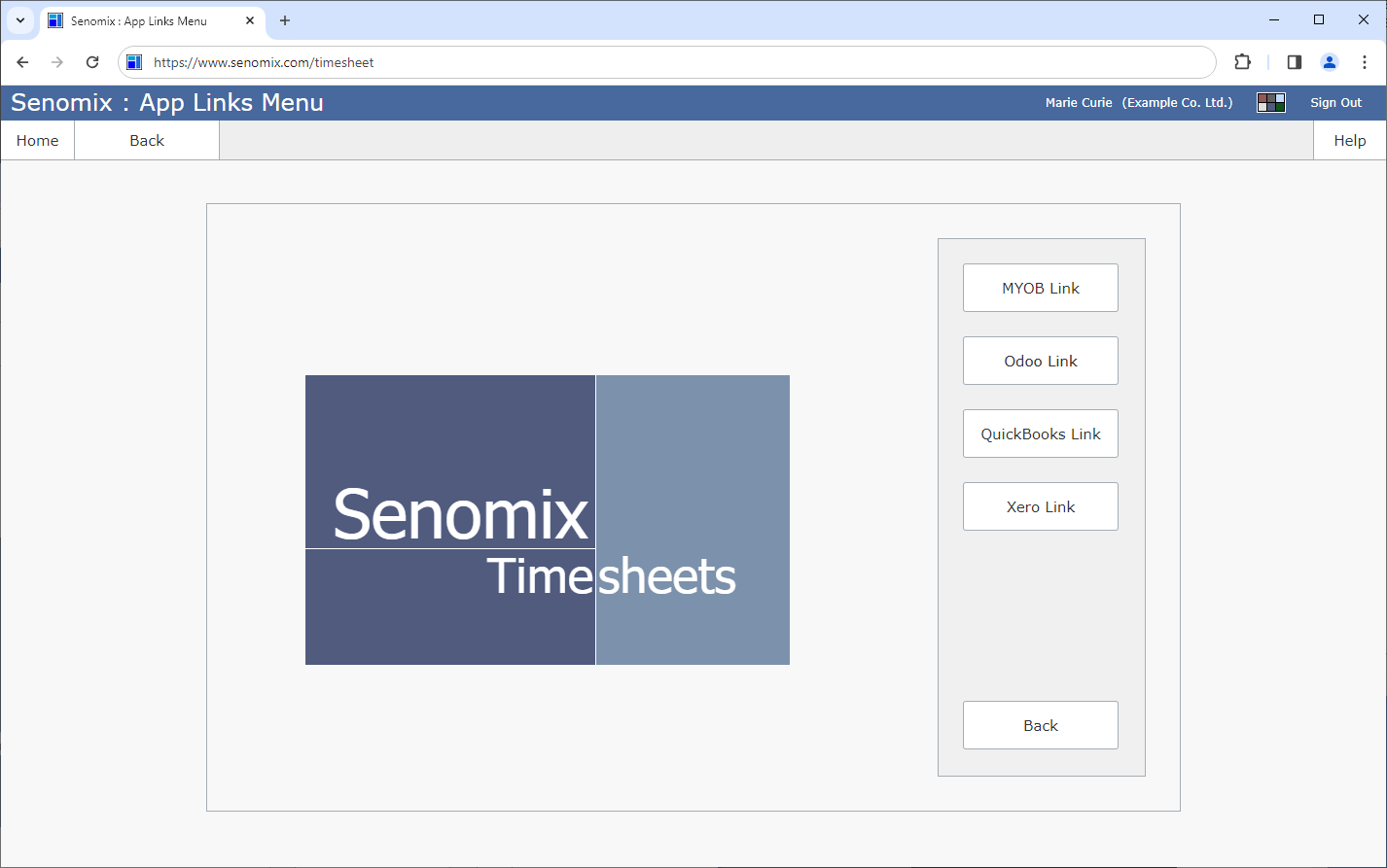 To sign out and exit Senomix Timesheets you can click the Sign Out button at the bottom-right corner of your Main Menu screen, or click the top-right corner "Sign Out" link at any time.